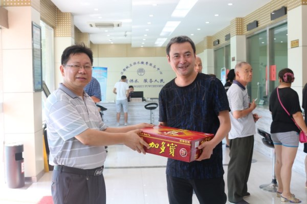 入伏以來,氣溫持續(xù)升高,為切實做好夏季防暑降溫工作,保障一線勞動者的身體健康,確保供水生產(chǎn)的正常運行,7月26日上午,在總經(jīng)理繆朝暉的帶領(lǐng)下,公司領(lǐng)導(dǎo)帶著防暑降溫用品,深入供水生產(chǎn)、服務(wù)一線、施工現(xiàn)場和鄉(xiāng)鎮(zhèn)供水所進(jìn)行夏季高溫慰問,把公司的關(guān)心、關(guān)懷送到了員工中間,使廣大員工在炎炎夏日中感受到了絲絲清涼。在慰問現(xiàn)場,公司領(lǐng)導(dǎo)對高溫期間仍然堅守崗位的廣大員工表示慰問和感謝,同時叮囑做好防暑降溫工作,動員大家戰(zhàn)高溫、保生產(chǎn),全力組織好夏季高峰供水工作,確保安全度夏。