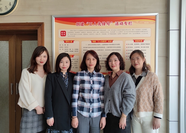圖為惠民公司營銷管理辦公室全體成員在創(chuàng)爭專欄前合影
