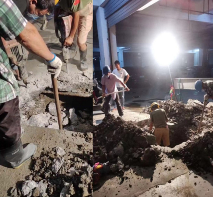 8月11日上午8時(shí)許,公司得到真武楊莊京滬高速下一處DN800球管漏水消息后,迅速組織人員趕往現(xiàn)場。經(jīng)現(xiàn)場勘查,因挖機(jī)施工失誤造成管身破出一個(gè)20公分大的洞。為了防止停水造成大范圍群眾和重點(diǎn)單位部門用水受到影響,經(jīng)驗(yàn)豐富的搶修人員對(duì)此迅速做出搶修方案:關(guān)閉泵站增壓泵,低壓供水,用其木棍堵住部分余水,便于人員入坑打抱箍。經(jīng)過4個(gè)多小時(shí)艱苦奮斗,于下午13點(diǎn)30分,供水恢復(fù)正常。