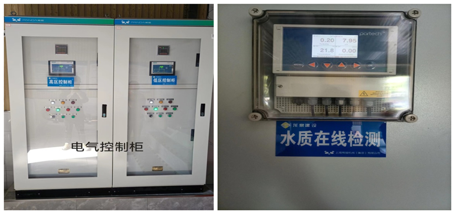 二次供水智慧化標(biāo)準(zhǔn)泵房是高層住宅居民小區(qū)中的重要配套設(shè)施,我公司高度重視,并首先在梧桐公園小區(qū)進(jìn)行試點并已建成使用,在此建設(shè)和推廣過程中,均要求做到:每個泵房的控制柜分別控制與其相對應(yīng)的設(shè)備;配有渾濁度、余氯和PH值在線檢測設(shè)備;24小時檢測出水渾濁度、余氯和PH值三個指標(biāo)確保每戶市民用水安全;此外,每個控制柜配有觸控屏幕,詳細(xì)記錄實時進(jìn)水壓力、出水壓力、變頻數(shù)值、機(jī)泵運行等參數(shù)指標(biāo)。