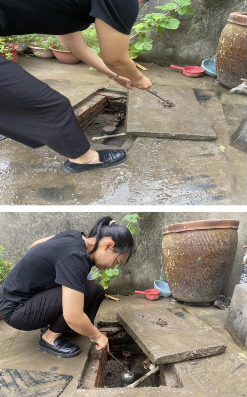 胡小娟是邵伯供水所成立初期就加入的“老員工”了,她負(fù)責(zé)的區(qū)域離鎮(zhèn)區(qū)較遠(yuǎn),要騎行半小時(shí)左右才能到達(dá)抄表區(qū)域,到達(dá)后停下車輛,拿起撬桿,將10多斤的厚水泥蓋撬起,雙腳跨入水表箱,將水表周邊泥土砂石清理完,表盤擦拭干凈后讀取數(shù)據(jù)、記錄數(shù)據(jù),天氣悶熱,不一會(huì),她的后背已經(jīng)濕透,擦了擦汗又前往下一個(gè)水表點(diǎn),重復(fù)著掀井蓋、清理表面、趴下看表讀數(shù)等這樣的“機(jī)械化”動(dòng)作。