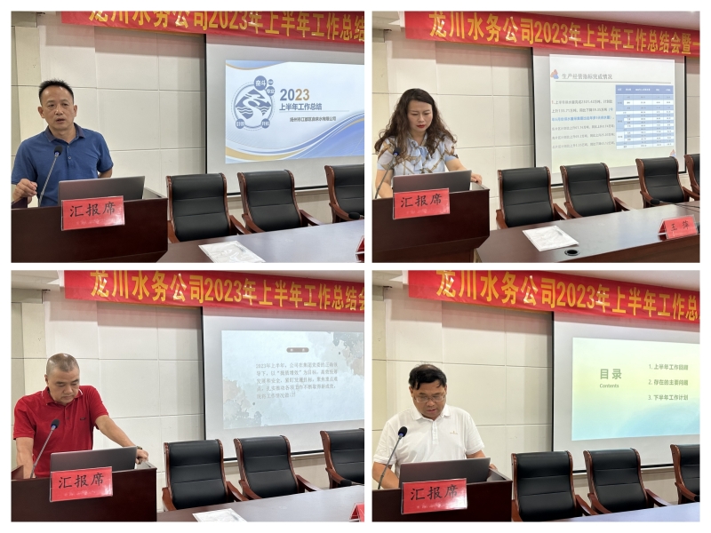 會議分別聽取了計劃財務(wù)部、運(yùn)營技術(shù)部、客戶服務(wù)部、自來水公司、惠民區(qū)域供水公司、龍泉建設(shè)工程公司、龍川污水處理公司等七個部門單位2023年上半年工作總結(jié)報告。上述各部門、子公司負(fù)責(zé)人分別圍繞上半年生產(chǎn)經(jīng)營指標(biāo)、重點(diǎn)工作完成情況、存在的主要問題、解決對策及下半年工作計劃作了匯報交流。