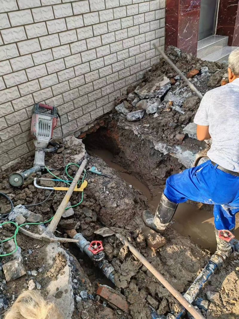 近期玉帶公寓用戶反映21幢、22幢高層無水可用,接到用戶報修后,自來水公司管網(wǎng)辦副主任王曉靜同志與龍泉建設工程公司維修部主任李兆軍同志帶領維修人員,第一時間趕到現(xiàn)場,為居民解決用水問題,經(jīng)現(xiàn)場查勘發(fā)現(xiàn):玉帶公寓(前身為公檢法大院)內(nèi)部供水管道多年前安裝,自來水管道布局較為復雜,漏點又在房屋內(nèi)部,維修難度較大。維修人員利用尋管儀巡查,在巡查過程中因干擾太多無法確定漏點上游管道,后經(jīng)管網(wǎng)辦與龍泉公司工作人員現(xiàn)場拿方案,最終決定采取在墻體外側(cè)開挖,切除管道的辦法對漏點進行維修。