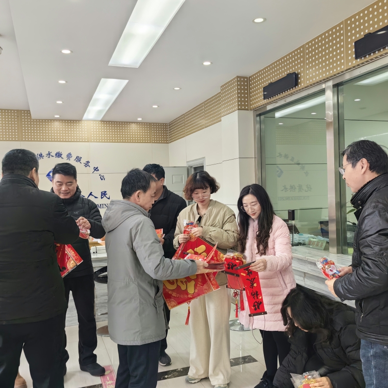 活動(dòng)現(xiàn)場,由龍川水務(wù)公司總經(jīng)理李忠國親自帶隊(duì),公司工會主席石元忠、副主席孫劍及黨群部工作人員共同組成新春走基層特別慰問小組陪同,他們帶著精心挑選的一系列洋溢著喜慶氛圍的“福”字,以及富有蛇年特色的掛件禮物,深入各部門與子公司的集中辦公點(diǎn),每到一處,都受到了職工們的熱烈歡迎。一張張?jiān)⒁庀槿鸬?ldquo;福”字,一件件憨態(tài)可掬的蛇年掛件,一句句飽含深情的真切問候,如冬日暖陽,將濃濃的年味兒與新春的祝福,精準(zhǔn)地傳遞到每一位職工的心坎上,讓整個(gè)公司沉浸在歡樂祥和的春節(jié)氛圍之中。